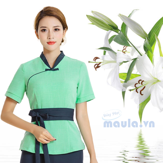 Đồng phục lễ tân Spa chất liệu cotton co giãn thấm mồ hôi